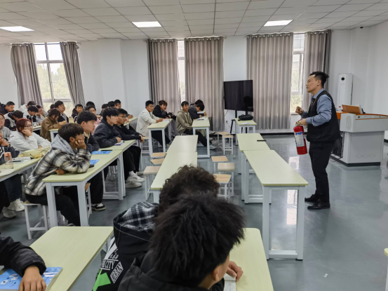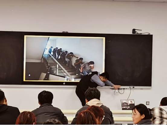 火灾逃生要领:1.火灾发生时应立即使用楼梯逃生,不要试图收拾财物,严禁使用电梯;2.保持冷静,不要惊慌,逃生时候要有序撤离;3.随手关上防火门可以有效防烟;4.利用楼梯逃生时,应沿墙壁行动低身前行,捂住口鼻。并在最后动员听讲师生实际模拟演练了火灾逃生。