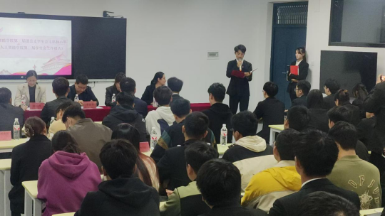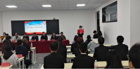 2024年10月23日,博贝棋牌官网最新版团总支学生会换届大会在三教乐学楼307教室中拉开帷幕。出席本次大会有学院党总支书记郭彩萍、院长李东亮、党总支副书记卢贝、党政办公室主任冯怡霏、学工办负责人杜龙洋老师、辅导员王杰老师、赵芝老师,及各兄弟院系学生代表。会议由2024届学生会干事李汐婷主持。